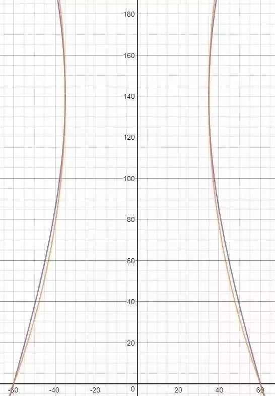 紫色為雙曲線,橙色為懸鏈線
