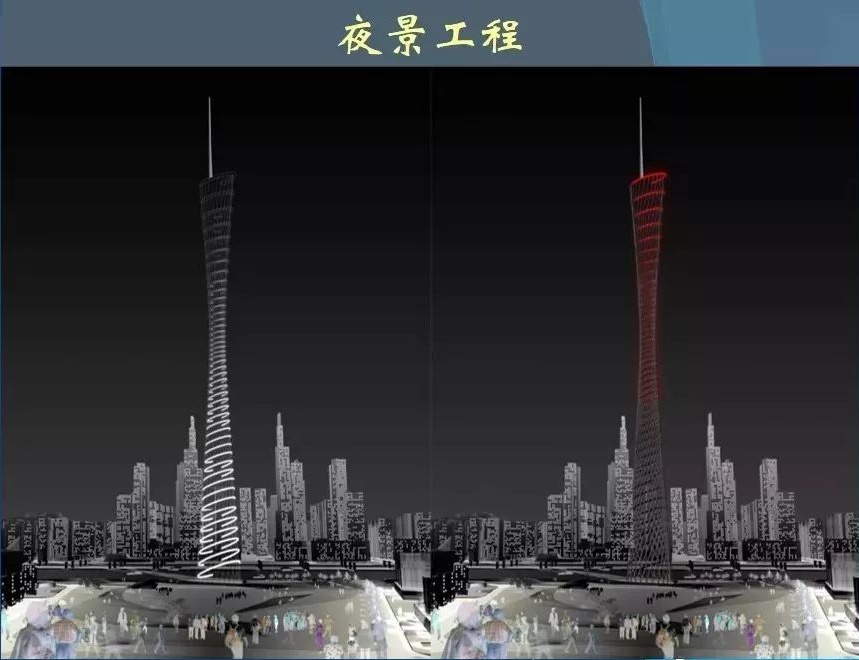 廣州塔塔身整體采用大量的網(wǎng)狀的漏風(fēng)空洞并設(shè)置特質(zhì)透明玻璃漏出窗景由上小下大的兩個(gè)橢圓體扭轉(zhuǎn)而成,外部鋼結(jié)構(gòu)體系由24根立柱、斜撐和圓環(huán)交叉構(gòu)成。