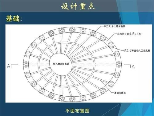 廣州塔外部鋼結(jié)構(gòu)體系由24根立柱、斜撐和圓環(huán)交叉構(gòu)成,各立柱間隔相當(dāng),環(huán)形排列。