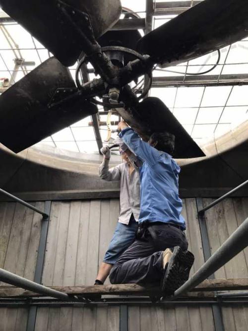 9. 檢查冷卻塔風(fēng)機(jī)上是否有泥土或水垢的積聚,如有將泥土及水垢小心地清除,以維護(hù)風(fēng)機(jī)的平衡。