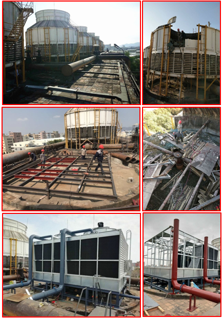 鴻翔花園位于深圳老城區(qū)之一的羅湖蔡屋圍區(qū)松園路。由于冷卻塔使用壽命長,冷卻塔填料老化,需要更換冷卻塔填料。接下來,根據(jù)鴻詳花園圓形冷卻塔填料的更換,介紹了拆卸和更換圓形冷卻塔填料的正確過程。 在清除