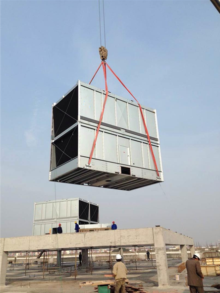 惠州東江環(huán)保橫流方形冷卻塔安裝 廣東特菱空調(diào)(http://m.paikemoxun.com)方形橫流式玻璃鋼冷卻塔結(jié)構(gòu)特點: (1)擋板:玻璃鋼材質(zhì),表面光滑美觀,耐腐蝕,防老化。 (2)填料:改性聚氯