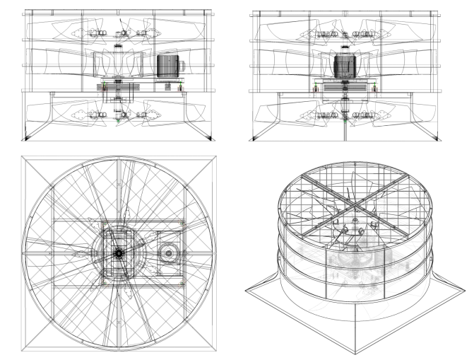 該風(fēng)機(jī)被用在超靜音冷卻塔配置上,風(fēng)機(jī)為鋁合金設(shè)計(jì),航空級(jí)鋁合金葉片,輪轂采用金屬模成型,葉片用不銹鋼U型碼連接,無級(jí)調(diào)節(jié)風(fēng)機(jī)角度,表面噴涂防腐處理,具有全壓高、風(fēng)量大等優(yōu)點(diǎn)。而且其氣動(dòng)性能好、高強(qiáng)度、耐腐蝕,并可通過改變?nèi)~片安放角度方法滿足工藝要求及提高裝置效率。該風(fēng)機(jī)最大的特點(diǎn)是突破傳統(tǒng)冷卻塔的4片、6片或者8片風(fēng)葉,該技術(shù)為國家發(fā)明專利,在一臺(tái)冷卻塔上安裝多層多片風(fēng)葉,常規(guī)配置為21片超靜音風(fēng)葉,保證風(fēng)量滿足的情況下達(dá)到降低噪音的效果;